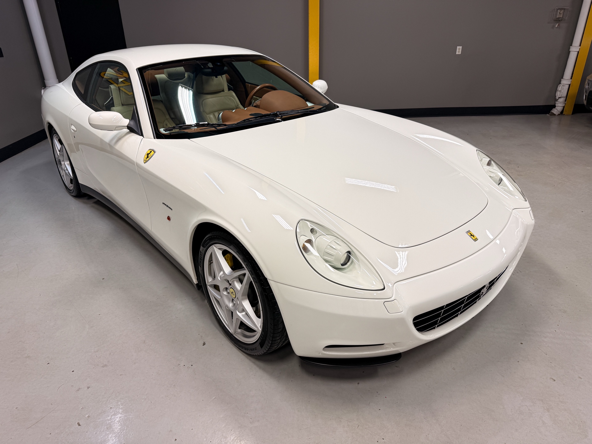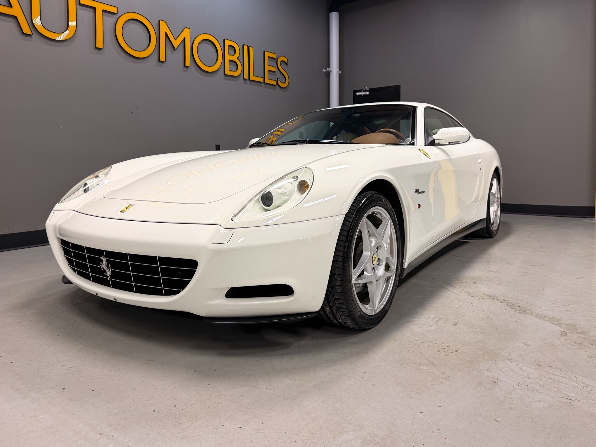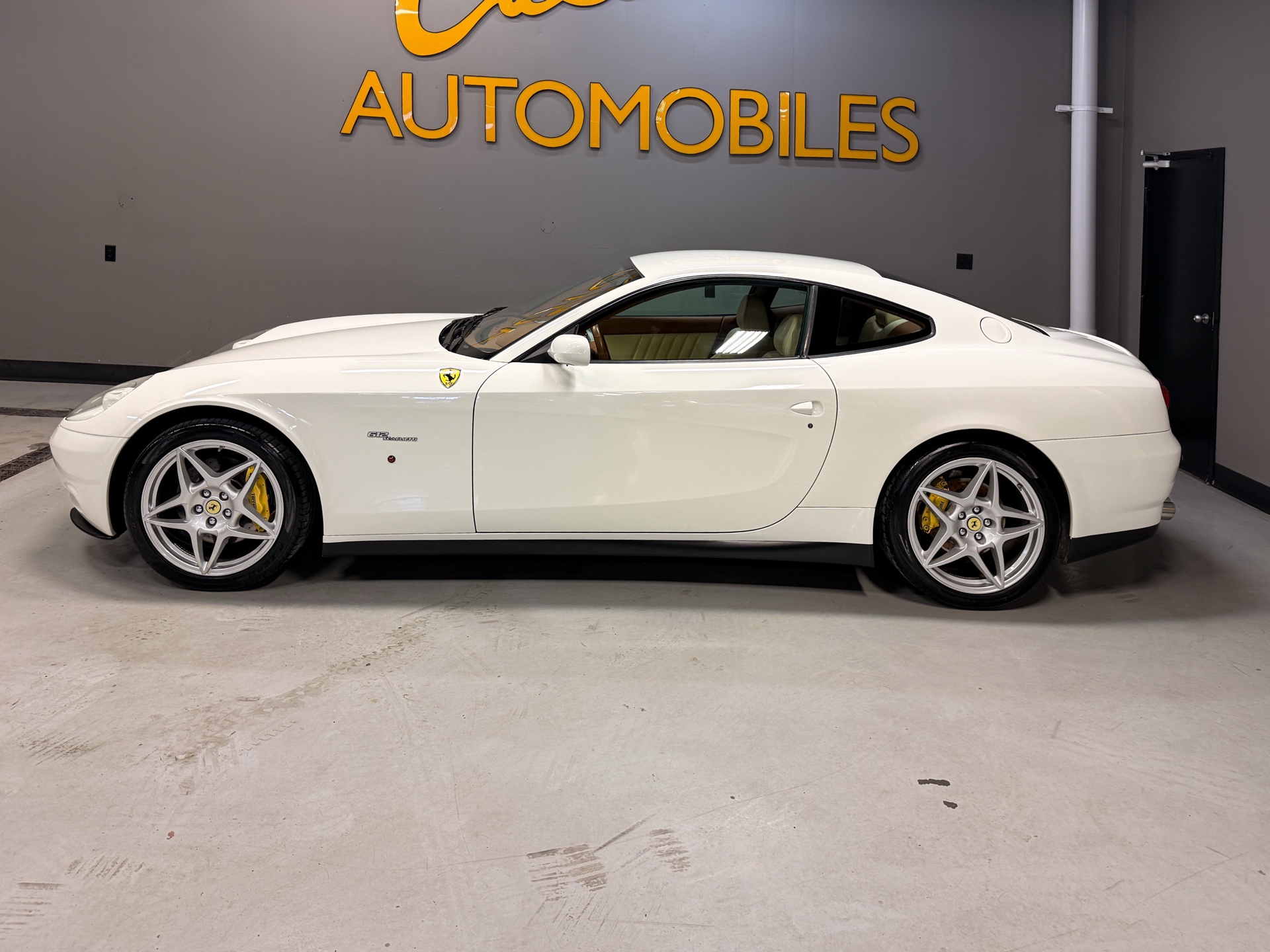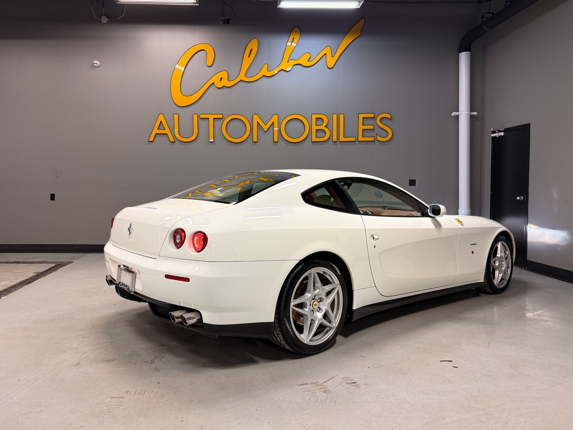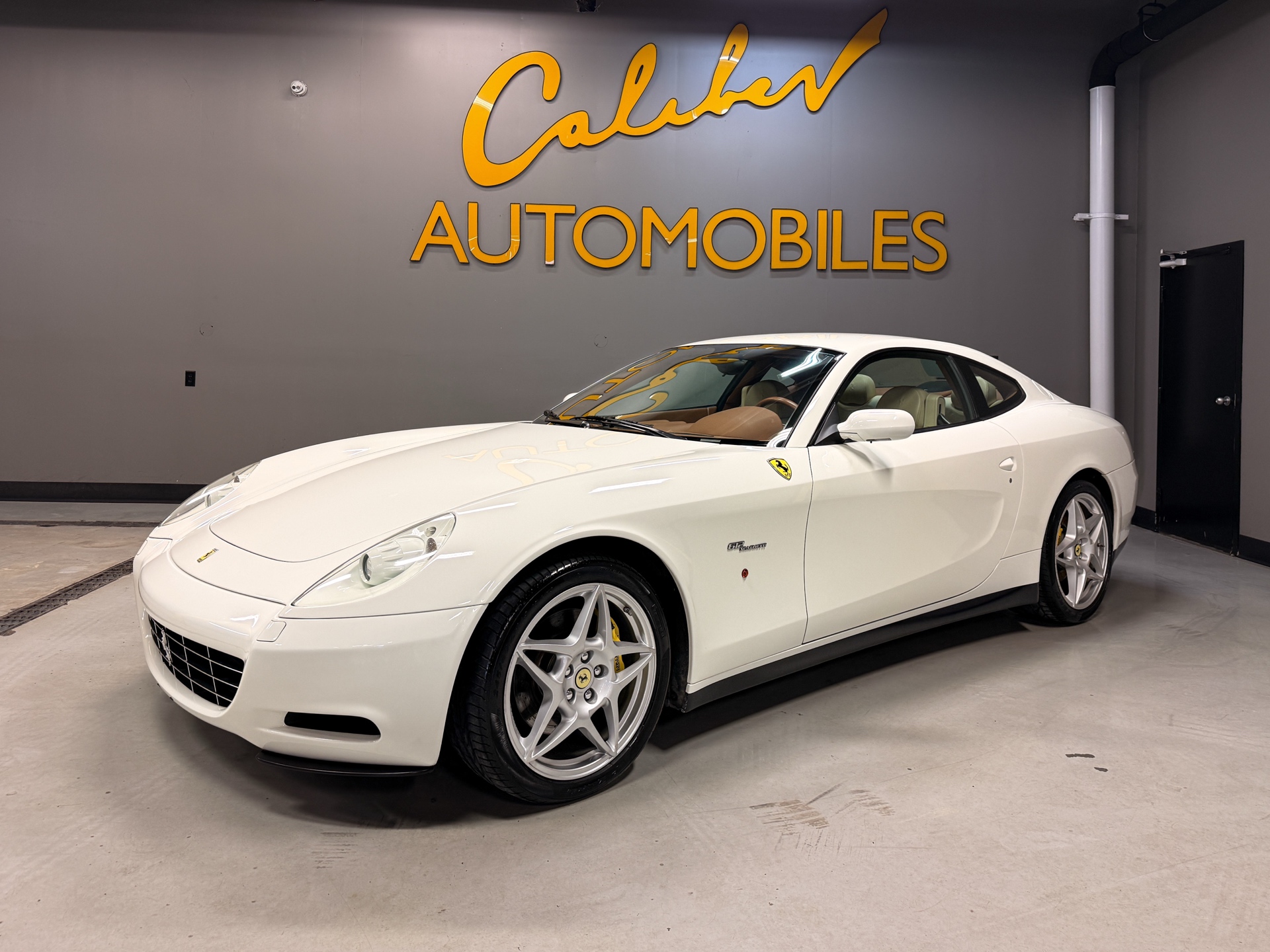 For over 45 years, Caliber Auto Ltd. has specialized in sourcing and supplying some of the rarest and most collectible cars from around the world. Offered here is a beautifully spec’d 2005 Ferrari 612 Scaglietti, finished in Bianco Avus over a factory Beige and Cuoio two-tone leather interior — a timeless, understated combination that suits the car perfectly. The 612 is one of Ferrari’s best-kept V12 secrets. It delivers the presence, sound, and character you expect from a front-engine Ferrari, but with true grand touring comfort and real usability. Designed by Pininfarina, the shape has aged exceptionally well, and the proportions in person are even more striking than photos suggest. Inside, it’s classic Ferrari craftsmanship from the era: rich leather throughout, clean aluminum trim, and a cabin that feels special without being overdone. Power comes from Ferrari’s legendary 5.7L naturally aspirated V12, delivering smooth, effortless performance and that unmistakable Ferrari V12 feel — refined when cruising, and properly aggressive when you lean into it. A well-optioned 612 in this condition is becoming increasingly hard to find, and it remains one of the best ways into a true Ferrari V12 grand tourer.