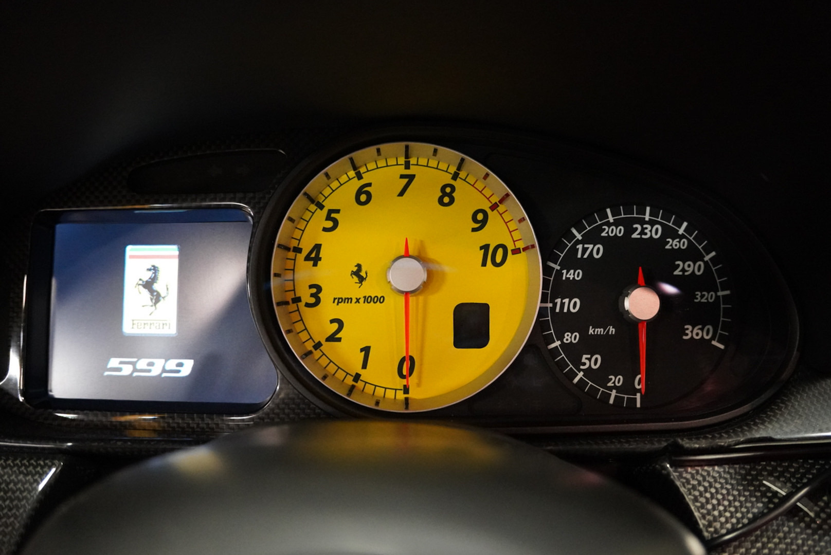 Powered by a 6.0L naturally aspirated V12 derived from the Enzo, the 599 produces 612 horsepower and 448 lb-ft of torque, paired with Ferrari’s F1 SuperFast 6-speed automated manual transmission, capable of gear changes in just 100 milliseconds.