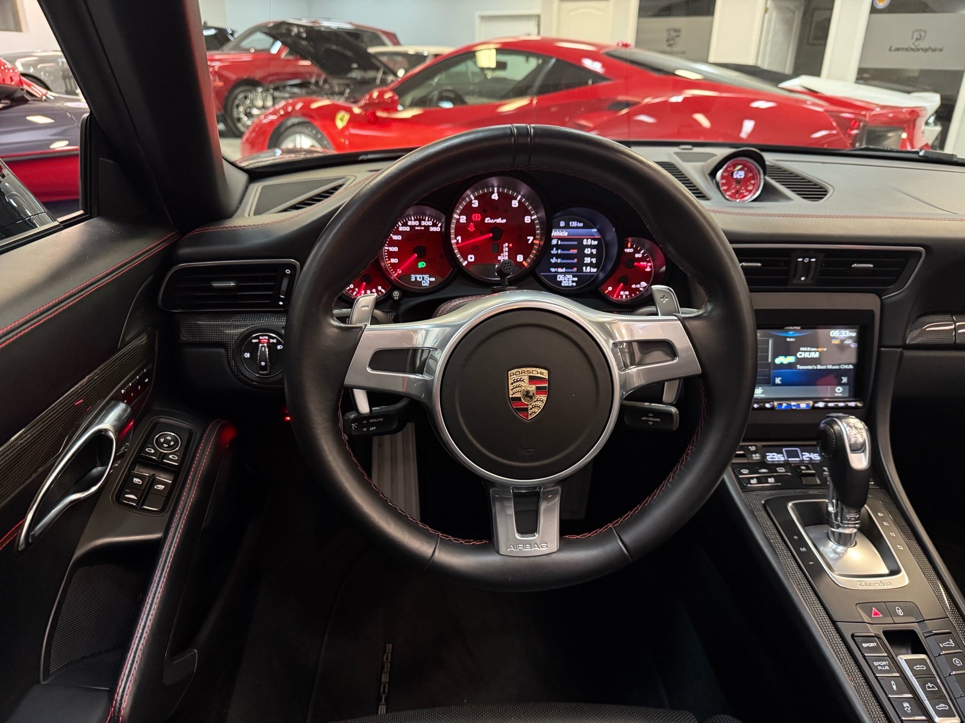 For over 44 years, Caliber Auto Ltd. has specialized in supplying the rarest and most collectible cars around the world. We are extremely excited to offer for sale this 2014 Porsche 911 Turbo Cabriolet — a beautifully spec’d example finished in Black over Black Leather, combining timeless styling with everyday usability and blistering performance.