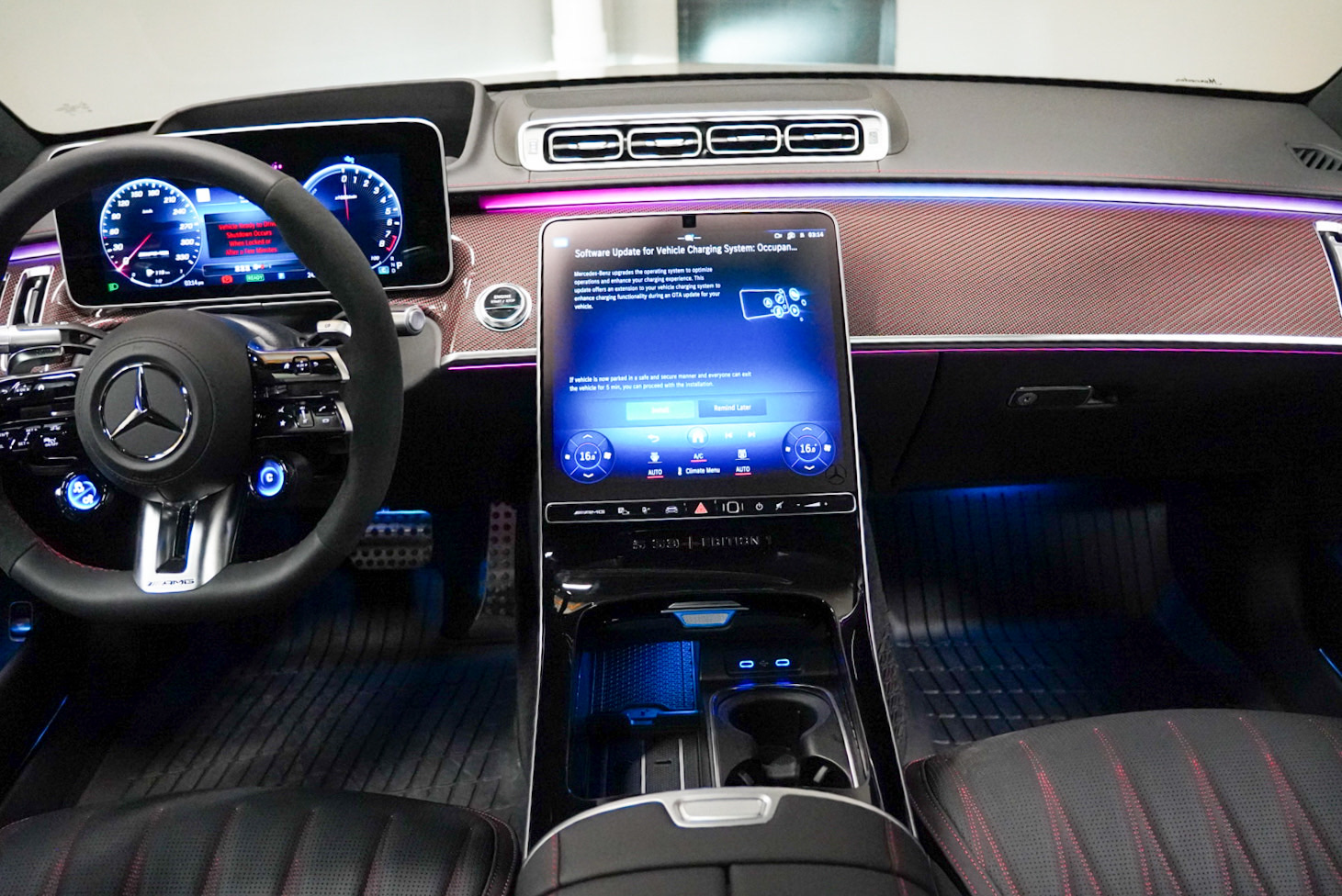 MBUX Hyperscreen and Rear Tablet, a full-glass digital dash that stretches across the interior and lets rear passengers control climate, media, and more